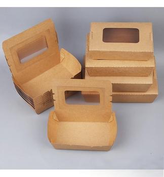 Personalizado impreso desechable para llevar embalaje de alimentos de papel Kraft almuerzo Bento Sushi ensaladas cajas con ventana