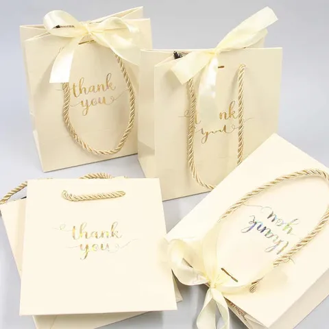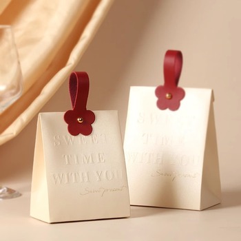 Caja de papel especial de estilo europeo para bodas, estampado de papel de aluminio, bolsa de regalo de dulces impresa con asa
