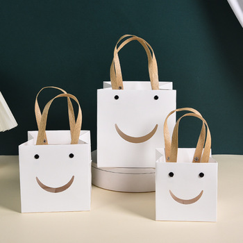 Venta al por mayor nueva bolsa de embalaje de papel Kraft diseño creativo bolsa de mano sonriente Almacenamiento de joyas saliente caja de embalaje conveniente
