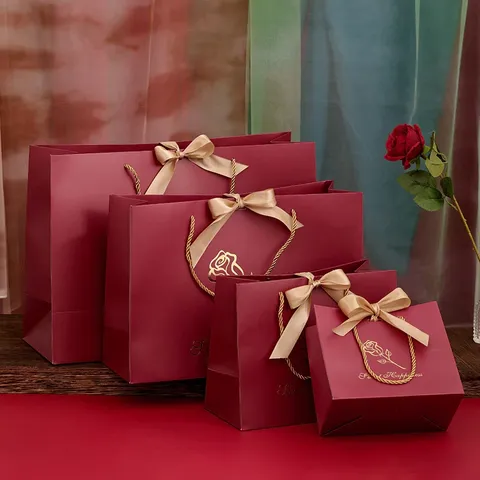Bolsas de regalo rojas para bolsa de regalo de Navidad con logotipo de rosa azul y dorada Bolsa de papel