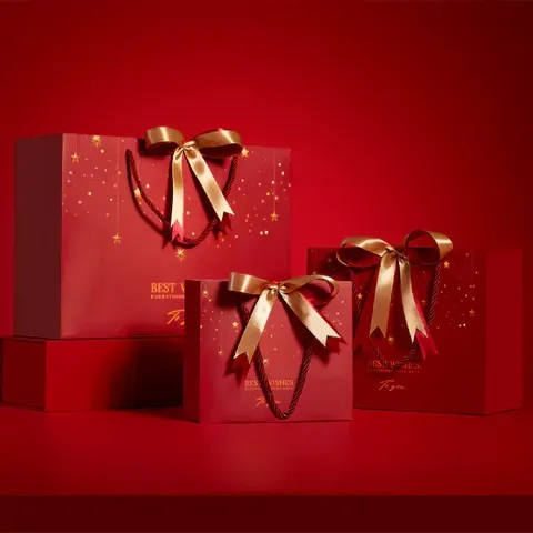 Bolsas de regalo rojas para bolsa de regalo de Navidad con logotipo de rosa azul y dorada Bolsa de papel